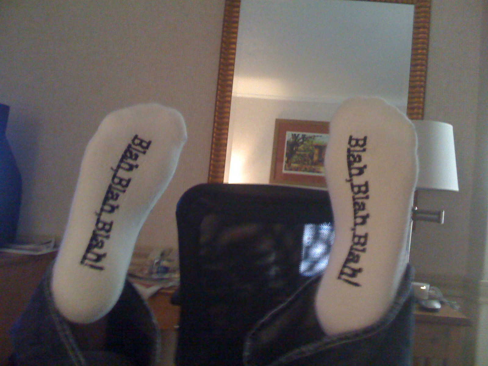 We’re having a slow morning because we were up late last night visiting. So here he is with his coffee and I’m having pomegranate tea.